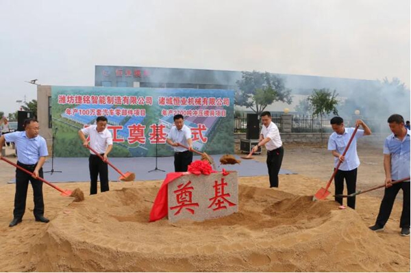 8月9日,山东省诸城市昌城镇举行潍坊捷铭年产100万套汽车零部件项目、恒业机械年产 2700 吨冲压模具项目开工奠基仪式。