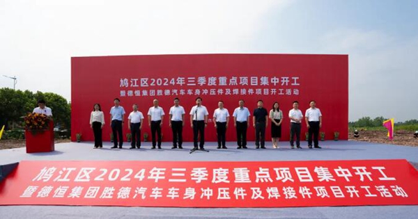 8月13日上午,安徽省芜湖市鸠江区2024年三季度重点项目集中开工暨德恒集团胜德汽车车身冲压件及焊接件项目开工活动在北湾智能装备制造园-德恒汽车零部件项目地块举行。鸠江区委书记方忠,区委副书记、区长黄万勇等政府领导,奇瑞控股集团有限公司副总经理、合肥瑞丞私募基金管理有限公司董事长吴晓东,芜湖德恒汽车装备集团董事长童小平,安徽华业建工集团有限公司总经理李祥虎等企业代表和嘉宾共同出席,一起见证北湾智能装备制造园高速成长的又一个里程碑时刻。