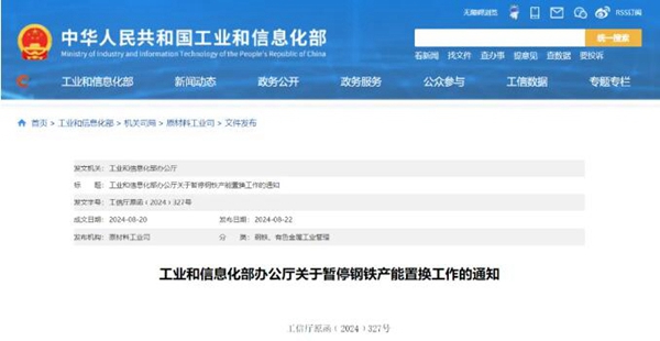 各省、自治区、直辖市、新疆生产建设兵团工业和信息化主管部门: 《钢铁行业产能置换实施办法》(工信部原〔2021〕46号)实施以来,钢铁行业通过钢铁产能置换,有力促进了行业改造升级、结构调整、布局优化和兼并重组,但仍存在政策执行不到位、监督落实机制不完善、与行业发展形势和需求不相适应等问题。当前,钢铁行业供需关系面临新挑战,绿色低碳、结构调整、布局优化、兼并重组等对产能置换政策提出了新要求。为进一步深化钢铁行业供给侧结构性改革,完善钢铁行业产能置换政策,我部将对钢铁产能置换办法进行修订。现将有关事项通知如下。 一、暂停实施钢铁产能置换 各地区自2024年8月23日起,暂停公示、公告新的钢铁产能置换方案。未按本通知要求,继续公示、公告钢铁产能置换方案的,将视为违规新增钢铁产能,并作为反面典型进行通报。 二、修订钢铁产能置换办法 我部将会同有关方面加快研究修订钢铁产能置换办法,进一步健全完善产能置换政策措施,广泛征求各有关方面的意见建议后印发实施。 特此通知。 工业和信息化部办公厅 2024年8月20日 |