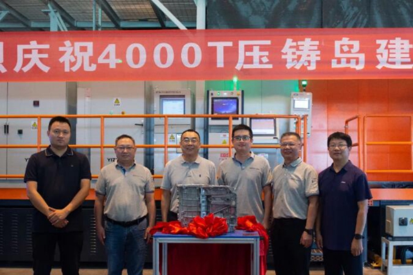 4000吨压铸岛台配置定量炉、喷涂、模温控制系统、抽真空装置、光电检测、冷却、伺服锯站去料饼、打刻等周边设备装置,具备三合一集成壳体毛坯铸造能力。4000吨压铸岛台的混合喷涂、局部挤压、局部模温控制、液压式抽真空、定量化数字等技术,不仅可以适应多种类型的产品,还进一步提升了生产效率和产品质量,全力确保800V电驱动项目向更高质量推进。