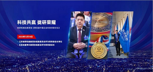 一路走来,我们收获了众多荣誉。2021 年,我们被评为高新技术企业;2022 年3月,我们增补为中国民营科技实业家协会创新与发展工作委员会副理事长单位;2023 年12 月18日,江苏拢研机城被民协组委委员会评为常务副会长单位,王启龙董事长也被民协组委会评为常务副会长;2023 年,我们还被中国商业联合会评为 2023 年中国商业质量奖。2024年,成为江苏名牌事业促进会常务理事单位,《锻压锻造设备全自动数控辗环机》标准制定企业(标准号:T/QGCML 4330—2024),并获中小企业公共信用等级评定优秀奖。