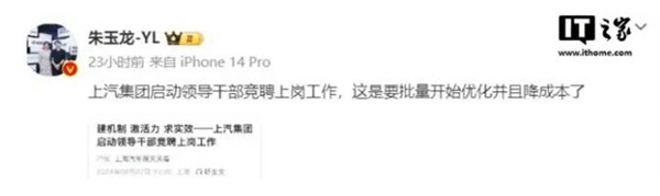 据上海汽车报社9月7日消息,上汽集团启动领导干部竞聘上岗工作。据悉,首批竞聘工作已经于 8 月下旬启动,实施单位涉及整车、零部件、移动出行和服务等板块。