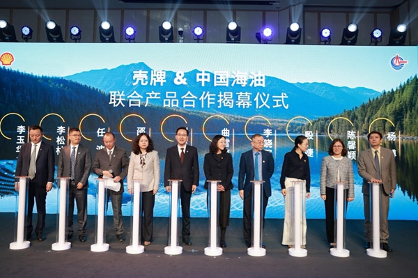 在全场嘉宾共同见证下,壳牌东北亚区润滑油供应链总经理李晓军、中海炼化销售管理部总经理李松林正式签署《高级液压油联合产品合作协议》。随后,中国海油和壳牌中国相关部门负责人共同为全新的联合产品揭幕。