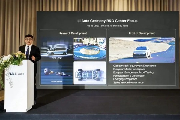 理想汽车表示,德国研发中心是其首个海外研发中心,同时也是迈向全球化研发战略布局的第一步。此前,公司已在北京、上海两大技术人才密集型城市先后设立研发中心,驱动核心技术自研及突破,推动了理想汽车在电动化、智能化方面的持续领先。 在技术开发方面,德国研发中心将秉持因地制宜、合作共创的研发理念,与中国研发团队共同完成前瞻造型设计、功率半导体、智能底盘和电力驱动四大领域的下一代技术研究。 在造型设计方面,理想汽车已经构建起“两国三地”全球设计创新体系,吸引并培养优秀汽车造型设计人才。德国研发中心将与国内造型设计团队协作,秉持前瞻先锋设计语言,创造划时代的汽车造型。