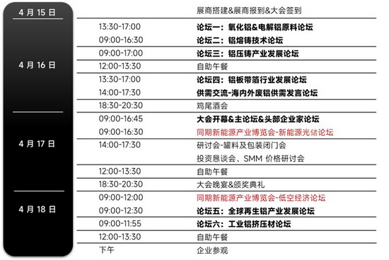 展区5大特色,上下游资源配齐! AICE 2025坚持与终端去一线,与零售端同进退。通过多元化渠道来合围提拉分散的销售链路,消化产能,促进品牌与展会的合作共赢。 - 铝上游:铝土矿、氧化铝、电解铝、预焙阳极、碳素企业等; - 铝压延-铝板带箔:汽车板、各类罐料、盖料、要用及食品软包铝箔、电池箱、电池软包铝箔、电池壳、航空航天、船舶航材等; - 铝挤压-管棒线型:汽车用铝材、轨道交通用铝材、建筑铝材、光伏铝材及制品、5G基材铝材、铝线缆、铝杆等; - 再生及压铸:铸造铝合金锭、废铝、压铸、一体化压铸; - 装备及辅材:熔炉、熔铸辅料、耐材、铝基中间合金、金属添加剂、精整、分析检测、热处理、在线处理、表面处理、深加工、环保与节能、再生铝预处理及加工、铝灰处理设备、轧辊、轧机等。 全年活动,筑梦新“铝”程