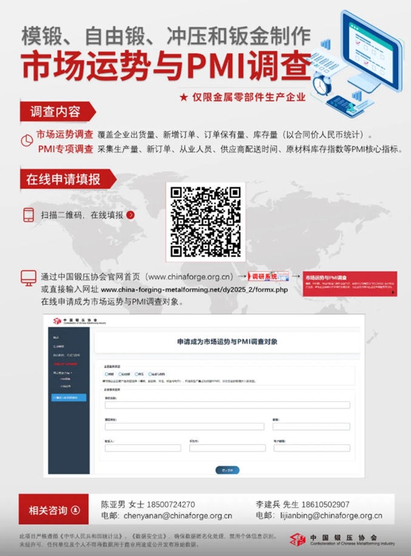 特别鸣谢参与本次PMI报告数据调查的行业企业,感谢各企业对推动模锻行业高质量发展做出的贡献与努力。