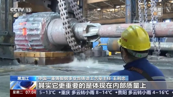 2月11日,中央电视台《朝闻天下》栏目报道了中国一重。新春伊始,位于东北老工业基地齐齐哈尔市富拉尔基区的中国一重,已经开始忙活起来了。20多米高的煅烧炉熊熊燃烧,一个重达700吨级的核电装备出炉了。