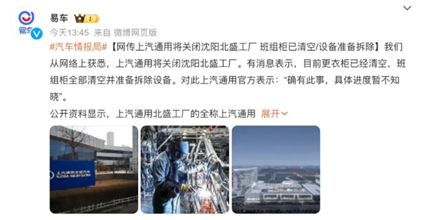 据媒体报道,上汽通用即将关闭位于辽宁沈阳的北盛工厂。