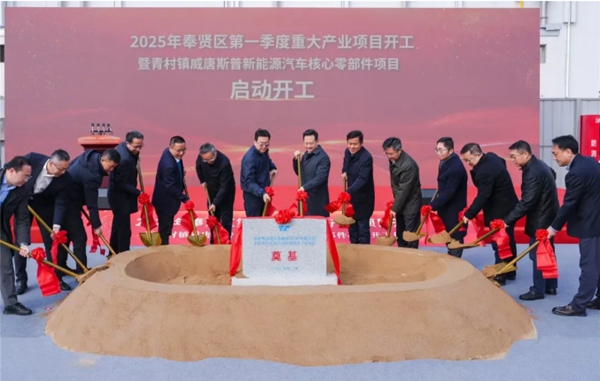 2月19日上午,上海市奉贤区举行2025年第一季度重大产业项目开工暨青村镇威唐斯普新能源汽车核心零部件项目开工仪式。