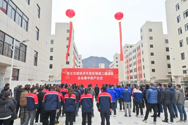 2月18日下午,在温州市文成县黄坦镇工业园区,举行了浙江文成经济开发区银成二期项目企业集中投产仪式。现场,10家新入驻企业集中投产,标志着文成在建设现代化产业体系中迈出新步伐。