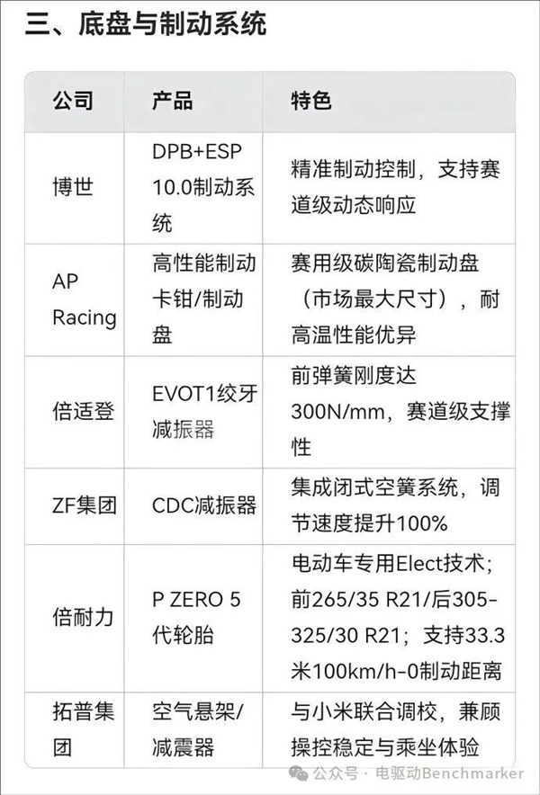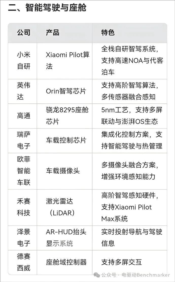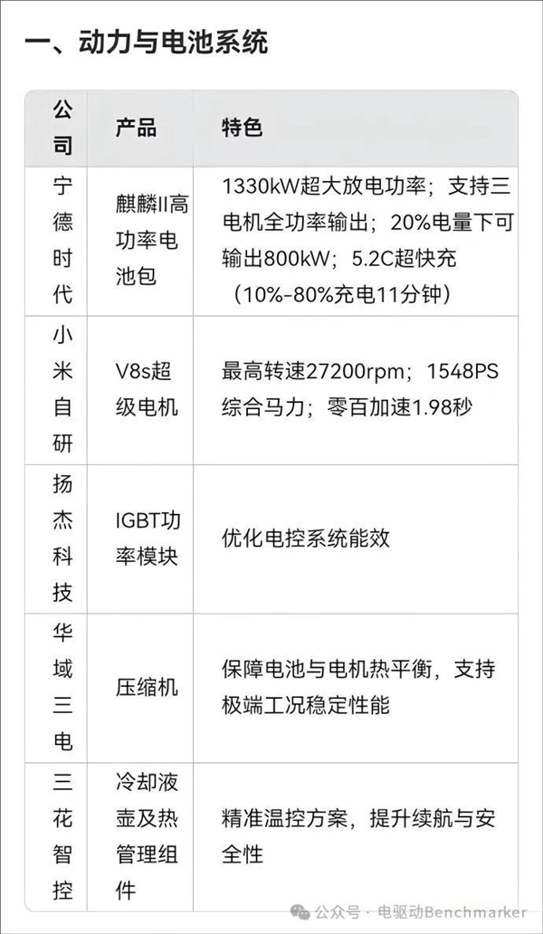 昨晚,小米SU7 Ultra正式发布,目标成为地表最快的四门量产车,标准版就能直接上赛道,售价52.99万元。小编火速为大家找到了小米SU7 Ultra核心供应商清单,供大家参考。