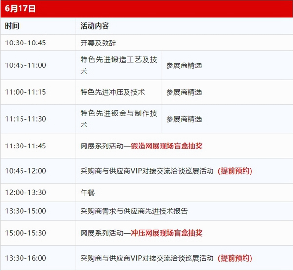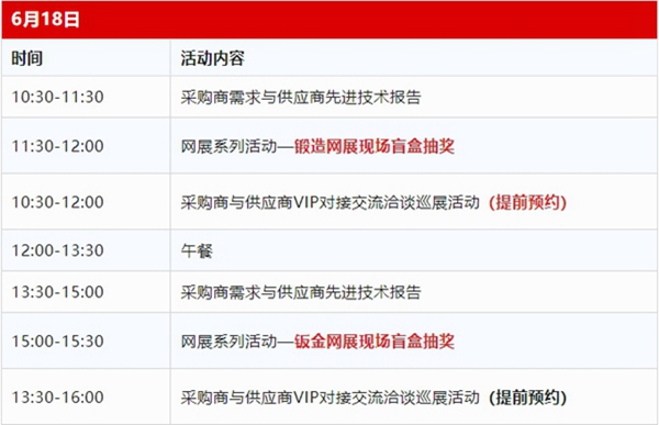 大会创新采用"零部件特色专区+精准预约"双引擎模式,特色展区即“中国国际金属成形零部件博览会”构建专业矩阵--航空锻件及材料特色展区;有色与不锈钢特色展区;汽车锻件展区;能源/石化/海工/封头特色展区;冷温热精锻件特色展区;核电/风电/火电及环件/自由锻件特色展区;精冲特色展区;冲压、钣金零部件特色展区等。本次采购会零部件供应商将以展商身份参与,并精准分配在相应的展区。采购商尊享VIP预约系统服务,提前获取供应商产品资料、在线预约专属洽谈时段、定制化参观展商路线规划。