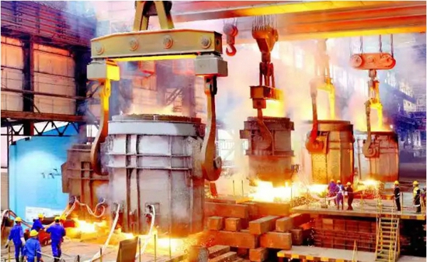3月14日下午,随着7个巨大钢包承载的776吨赤红钢液精准注入铸造模具型腔,由中国重型院承担研制的世界最大吨位双动卧式铝挤压机关键承力件——前梁,其浇注工作在国机重装二重装备浇铸现场取得圆满成功,标志着该项“大国重器”正式从设计蓝图进入实体制造阶段,是项目转入制造的第一个重大节点。