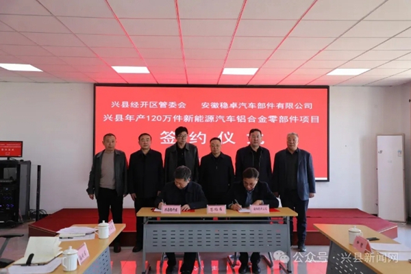 3月18日,山西省吕梁市兴县经济技术开发区与安徽稳卓汽车部件有限公司举行兴县年产120万件新能源汽车铝合金零部件项目签约仪式。