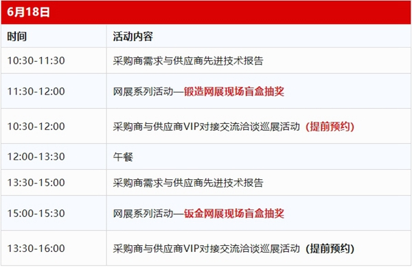 大会创新采用"零部件特色专区+精准预约"双引擎模式,特色展区即“中国国际金属成形零部件博览会”构建专业矩阵--航空锻件及材料特色展区;有色与不锈钢特色展区;汽车锻件展区;能源/石化/海工/封头特色展区;冷温热精锻件特色展区;核电/风电/火电及环件/自由锻件特色展区;精冲特色展区;冲压、钣金零部件特色展区等。本次采购会零部件供应商将以展商身份参与,并精准分配在相应的展区。采购商尊享VIP预约系统服务,提前获取供应商产品资料、在线预约专属洽谈时段、定制化参观展商路线规划。