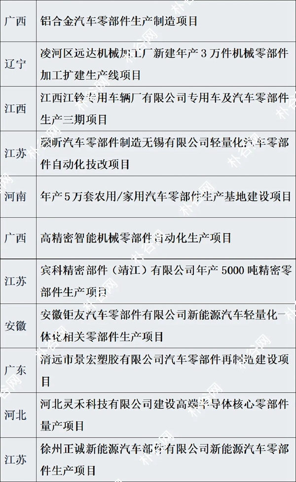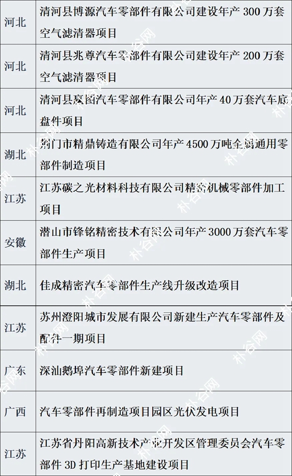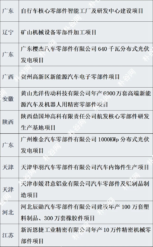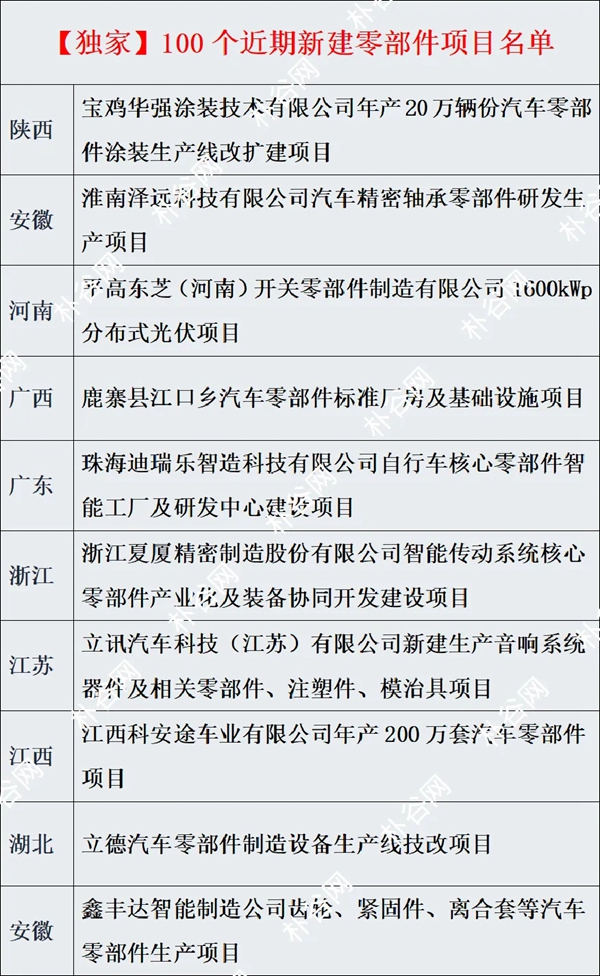 近日,朴谷网公布100个近期新建零部件项目名单。