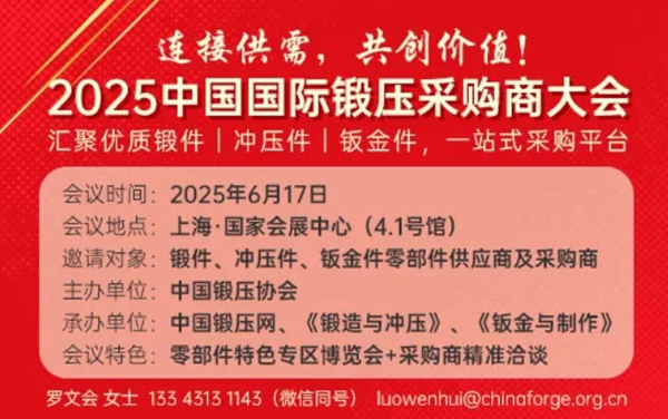 为了更好地配合展商展示,方便观众了解最新展品,促进新技术交流,中国锻压协会将在展会现场举办“2025中国国际锻造、冲压、钣金制作、工模具和连接焊接新技术及设备滚动发布会(TPP-MetalForm)”,“展+会”形式带给您技术知识和现场考察多维认知,激发思路、碰撞火花。 编辑:陈亚男 审核:李建兵 |