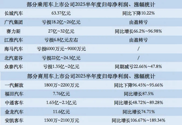 日前,整车上市公司陆续披露的2025半年度业绩预告,也成为众多车企是否行动起来积极响应倡议的“试金石”。