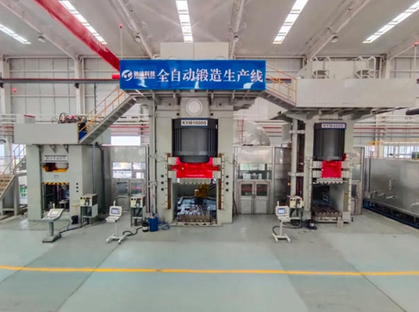 近日,从河南安阳驰通科技有限公司生产基地传来喜讯,由科达负责承建的锻压铝轮毂自动化生产线试产成功,标志着科达自主研制的KYM系列轮毂锻造压机正式迈入批量生产阶段,更助力驰通科技在高端轮毂智能制造领域迈出关键一步。 ![]() 该条全自动锻造生产线引入了3台科达压机,分别为预锻部分的KYM4000锻造压机、成型锻KYM10000锻造压机以及冲扩孔KYM800吨压机。 由于采用了缠绕式框架结构和模块化设计,科达KYM系列轮毂锻造压机与竞品相比,大大缩短了安调周期,从过去的两三个月缩短到一个月,同时由于在产品重量方面的优势,可以为客户节省运输费用,减少设备基础投资和施工时间,加上设备采用了整套电液伺服控制,在生产效率和节能方面也有着更加优异的表现。