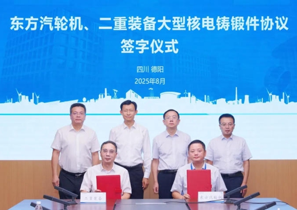 二重装备与东方汽轮机签署大型核电铸锻件合作协议。
