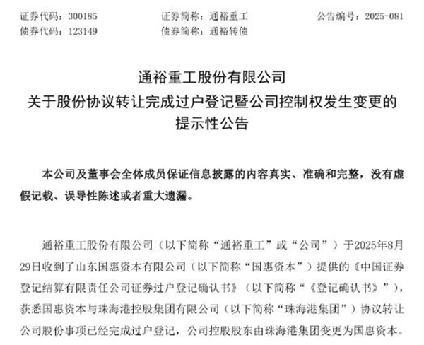 日前,通裕重工发布公告称,公司控股股东和实际控制人发生变更,公司控股股东由珠海港集团变更为国惠资本,实际控制人由珠海市人民政府国有资产监督管理委员会变更为山东省人民政府国有资产监督管理委员会。 ![]() 通裕重工依靠综合性研发制造平台优势,可以同时为陆上/海上风电的双馈式/直驱式/半直驱式风电机组批量提供锻件、铸件和结构件产品,主要产品形式包括风电锻造主轴、铸造主轴、轮毂、机架、轴承座、转子机壳、定子机座等。