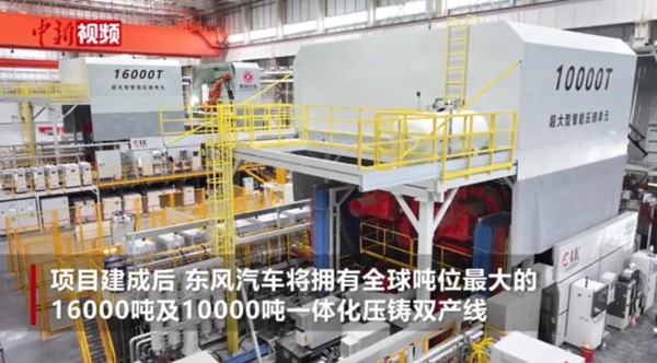 据中国新闻网消息,湖北武汉经开区军山新城东风汽车一体化压铸产业化项目联合厂房竣工验收,标志全球最大的16000吨及10000吨一体化压铸双产线正式落地,预计年产轻量化部件20万件。