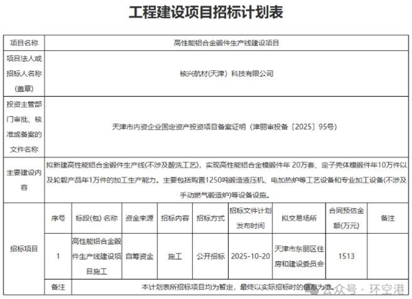 近日消息,天津市公共资源交易网发布关于《高性能铝合金锻件生产线建设项目》,项目即将启动。