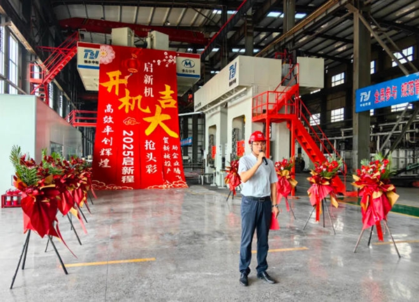 仪式由张洪富主持,现场气氛热烈。郭勇在致辞中表示,6300智能锻造生产线的正式投产,是公司多年来坚持技术创新、加大转型投入的成果。面对市场对高端锻造产品日益增长的需求,装备公司要以此次投产为契机,持续优化产品结构、提升服务水平,为客户提供更优质的锻造产品与解决方案。上午9点08分,随着郭勇宣布“6300智能锻造生产线正式开机”,张洪富按下启动按钮,生产线成功开机运行,现场锻出第一件通红的半成品。